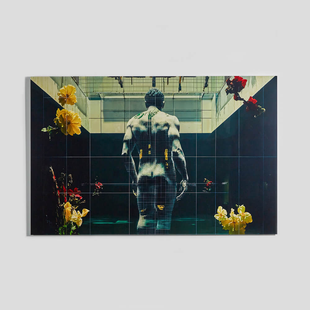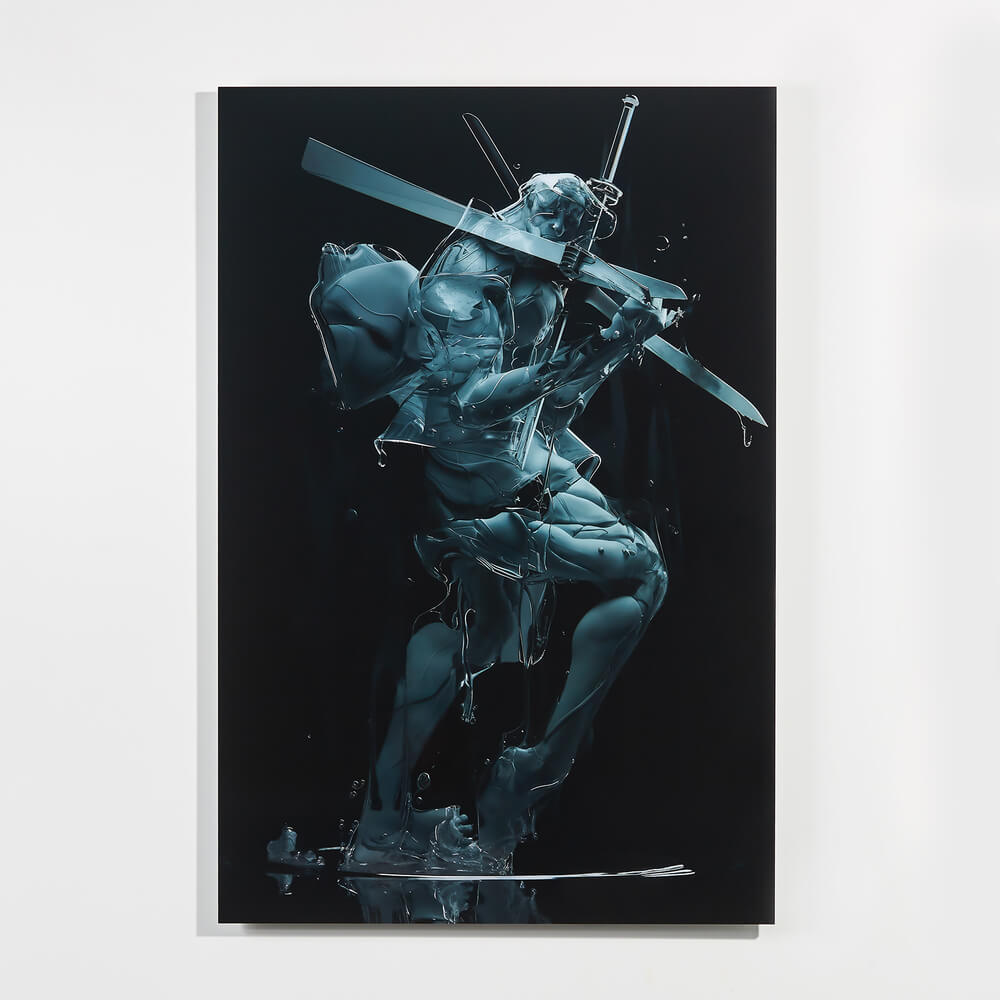 VS Gallery представляет групповую выставку четырех резидентов галереи, которые исследуют дигитализацию повседневности и используют для создания работ новейшие технологии. Камерные скульптуры Данила Карамушкина из серии Module напечатаны на специальном 3D-принтере, где основным материалом становится фарфор. Эту технологию художник изобрел самостоятельно. Кирилл Рейв тоже использует 3D-принтинг в качестве одного из медиумов, но основной процесс заключается в работе с нейросетями. Художник из сотен представленных искусственным интеллектом изображений выбирает единицы и дорабатывает их с помощью компьютерных технологий. Результат воплощен в сериях пластификаций BlueIsland, Lem1X, «Фрактальная деконструкция» и «Облака». Юлия Низамутдинова создает кинетические скульптуры, чьи плавные и текучие формы вдохновлены природой. Ее работы — яркий пример органичного сочетания биологического и научного. Серия Рината Абдрахманова «Вода шепчет о том, что мы никогда не осознаем» о метафорах границы между природным и абстрактным. Цветы, символизируя жизнь и смерть, балансируют на тонкой линии реальности, где преломления света превращают их в эстетический объект.